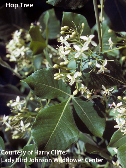 A small and handsome uncommon tree reaching 15-20’ height and spread. Occurs in moist woodlands as an understory plant and hosts giant swallowtail and eastern swallowtail butterflies. Features fragrant yellowish-green flowers that produce seeds once used as a substitute for hops. This small tree is quite lovely and would do well as a landscape specimen plant.