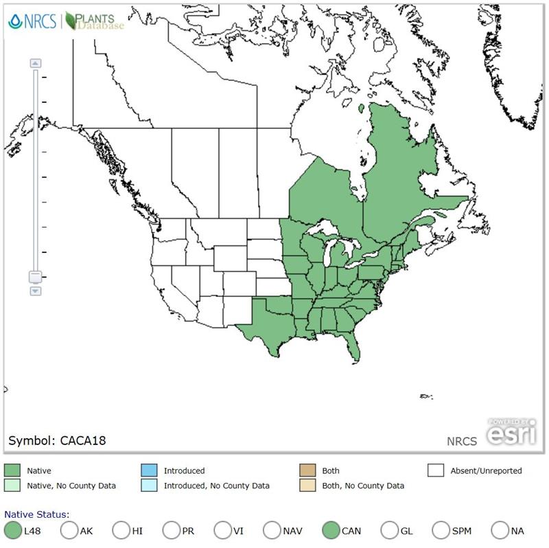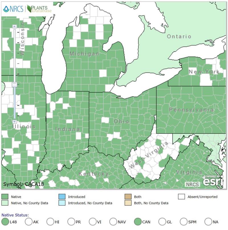An attractively shaped, low-maintenance understory tree for shady sites, typically reaching heights of 20-40’. Its truck has a fluted, sinewy appearance, resulting in its name “musclewood”. May be grown in lawns or naturalized in woodland areas. Tolerant of clay soils and black walnut trees.